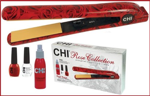 Cheap Now : Chi 1" Ceramic Flat iron Red Rose Special Edition with chi ceramic nail lacquer, Chi Ceramic Base and Top Coat and Chi iron Guard (PACKAGE DEAL). straighten, curl, flip and style.